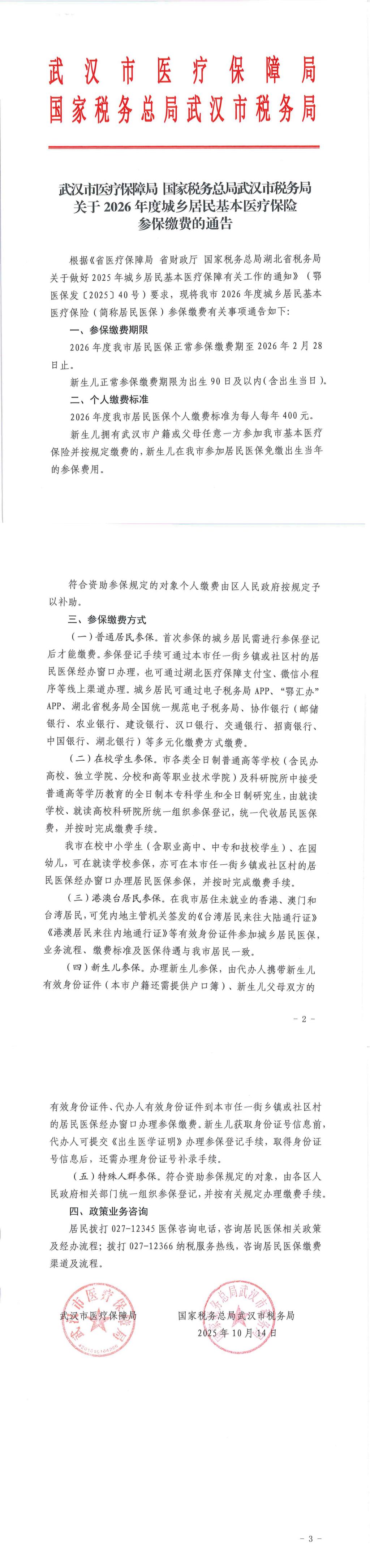 关于2026年度城乡居民基本医疗保险参保缴费的通告